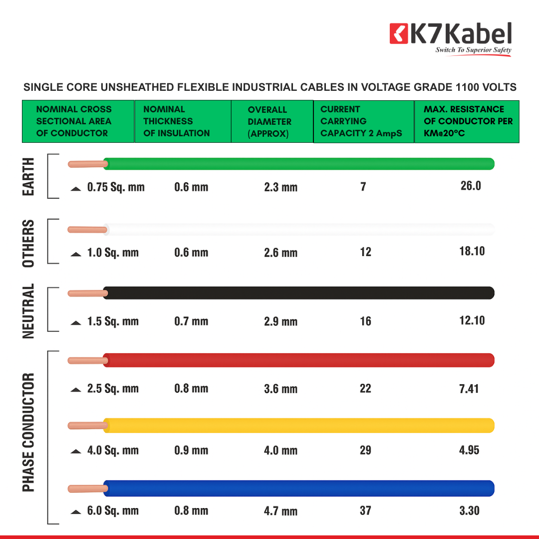 Immerse yourself in total safety and performance with K7Kabel Power Plus HRFR Flexible Single Core Cable. Engineered with Heat Resistant Flame Retardant (HRFR) PVC insulation and manufactured using 99.9% pure copper, this cable delivers superior conductivity, enhanced fire resistance, and long-lasting durability. Designed for both residential and industrial applications, Power Plus HRFR ensures reliable power flow while minimizing the risk of fire hazards — making it ideal for hazard-prone and high-density installations. Whether installed in electrical panels, cabinets, machines, switchgears, relays, controllers, or control units, this cable guarantees seamless connections and ultimate performance even in demanding environments.
