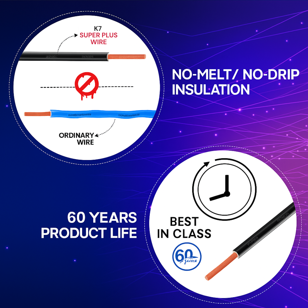 K7 Super Plus (ZHFR) is a premium Zero Halogen Flame Retardant wiring solution designed for maximum fire safety and human protection. Engineered with German innovation, it offers non-toxic performance, low smoke emission, and superior reliability for critical infrastructure.
